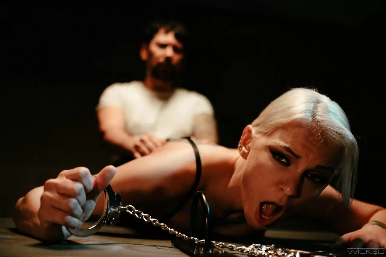 Белокурая цыпочка Кензи Тейлор показывает свой покрытый спермой язычок во время БДСМ-игры