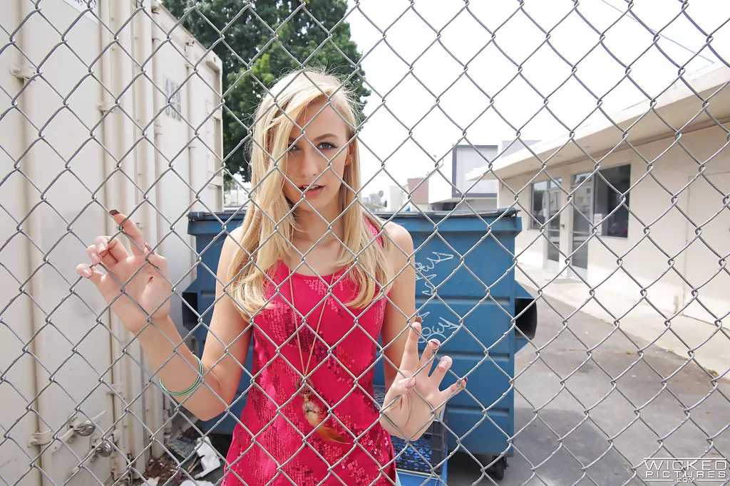 Белокурая красотка Алекса Грейс сверкает крошечными сиськами молодой порнозвезды на открытом воздухе