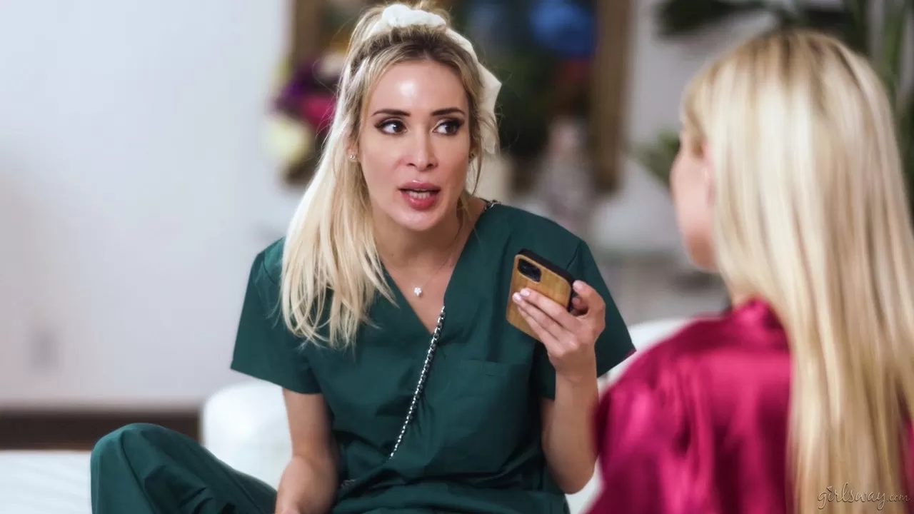 Белокурые сводные сестры Эйден Эшли и Кензи Энн занимаются лесбийским сексом на кровати