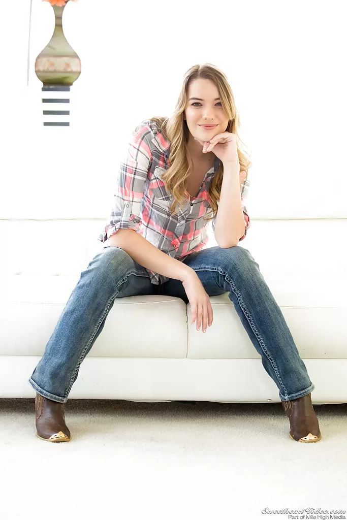Блондинка по соседству Кенна Джеймс снимает джинсы, чтобы позировать обнаженной