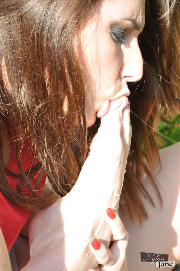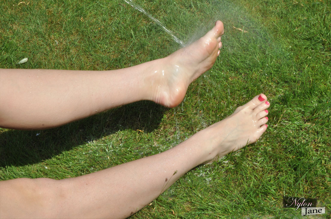 Британка Пиаже Турна лижет и сосет собственные пальцы ног на лужайке