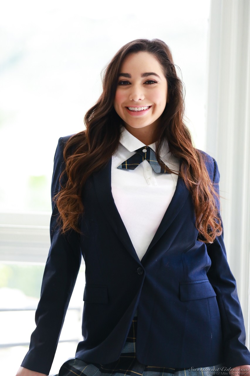 Девушка-одиночка Карли Грей снимает школьную одежду, чтобы позировать обнаженной в гольфах до колен