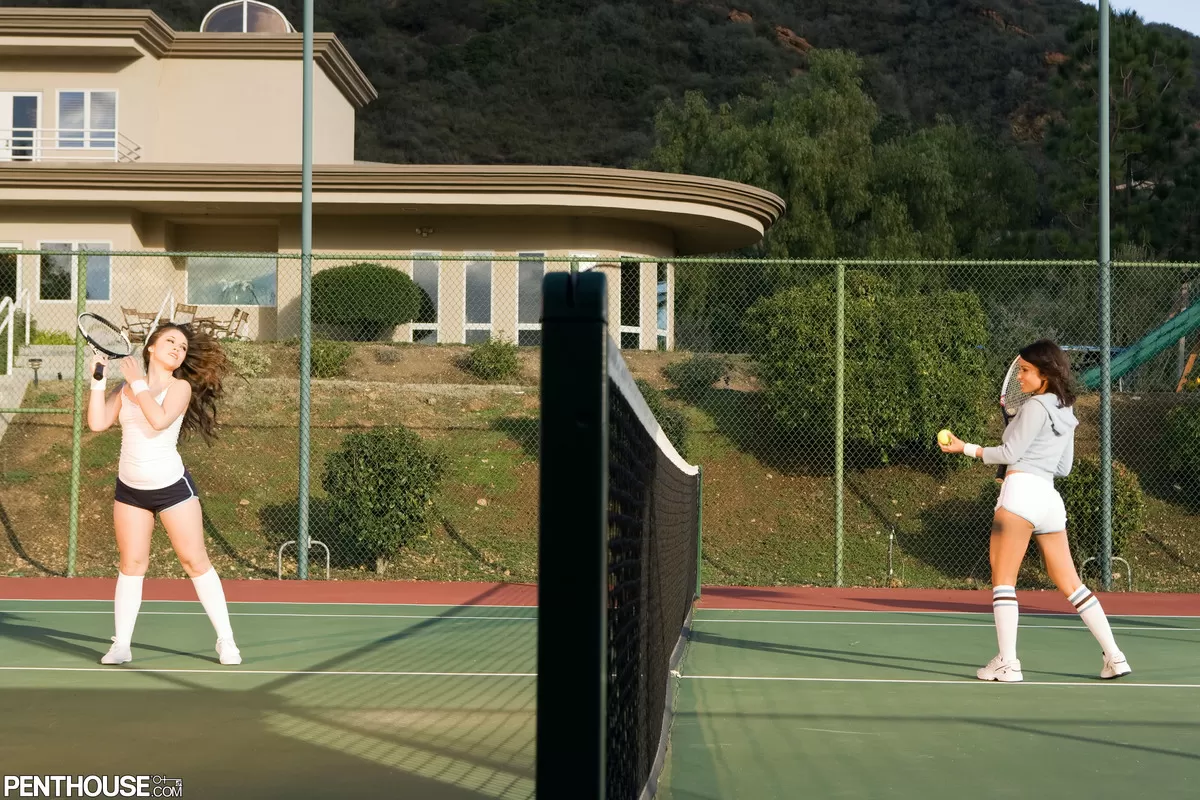 Горячие цыпочки Кристина Роуз и Лана Лопес занимаются лесбийским сексом на теннисном корте