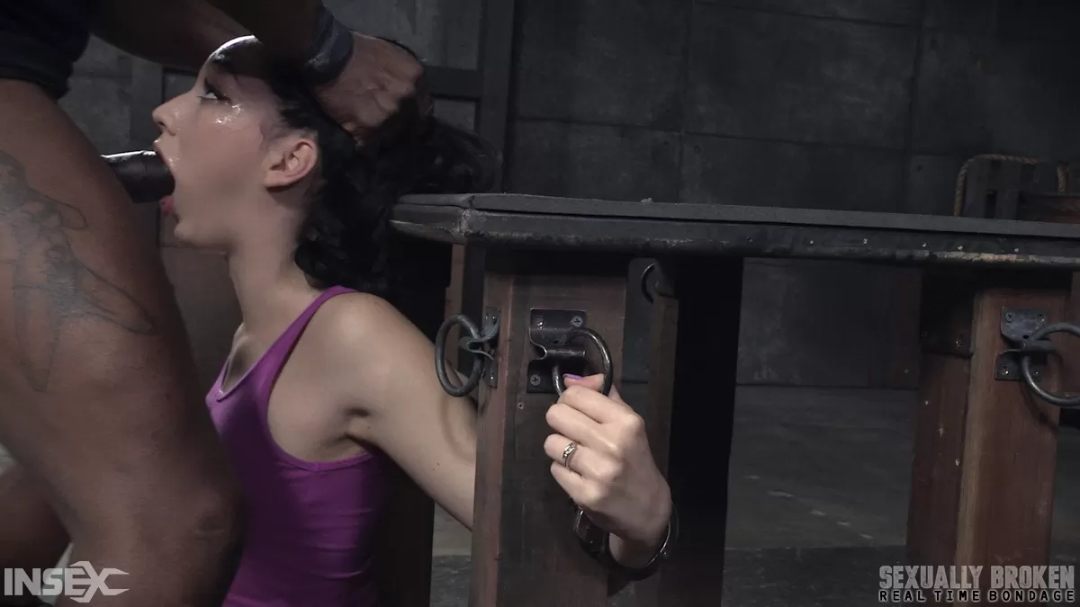 Горячую рабыню Арию Александер насильно кормят каким-то болотным черным членом во время грубого БДСМ-секса