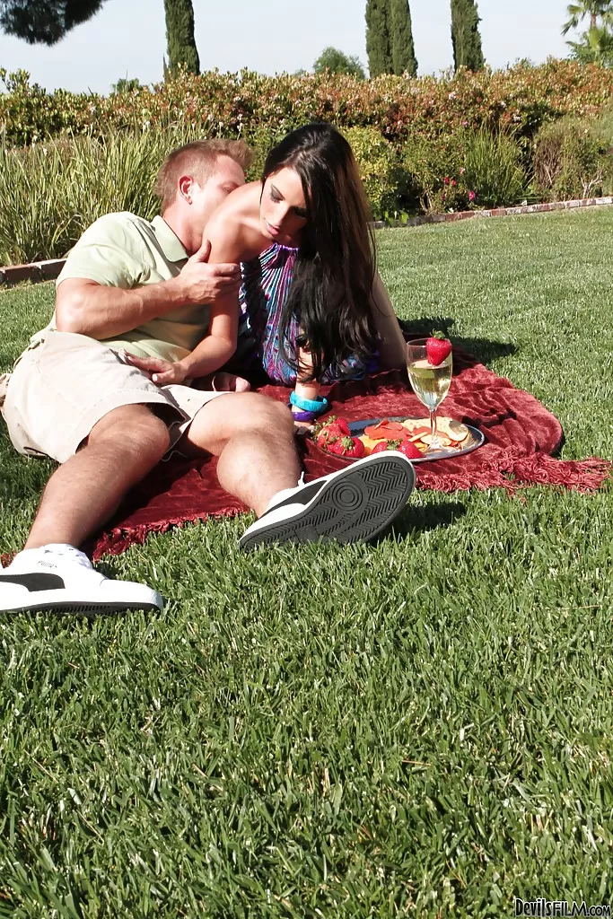 Грудастая красотка Кортни Кейн делает минет и трахается на открытом воздухе
