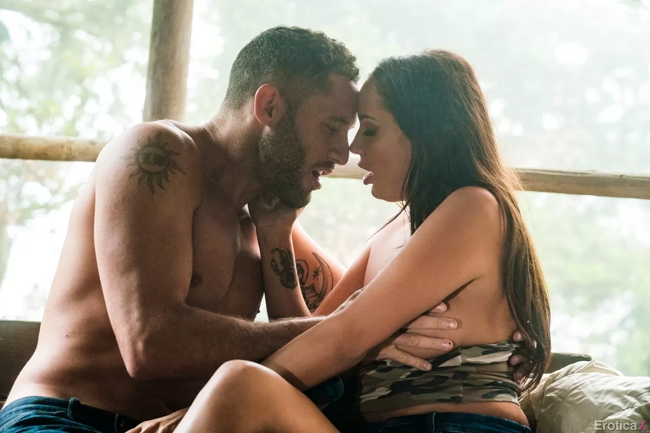 Грудастая красотка Софи Райан соблазняет своего друга-мужчину, стоя топлесс в черных трусиках