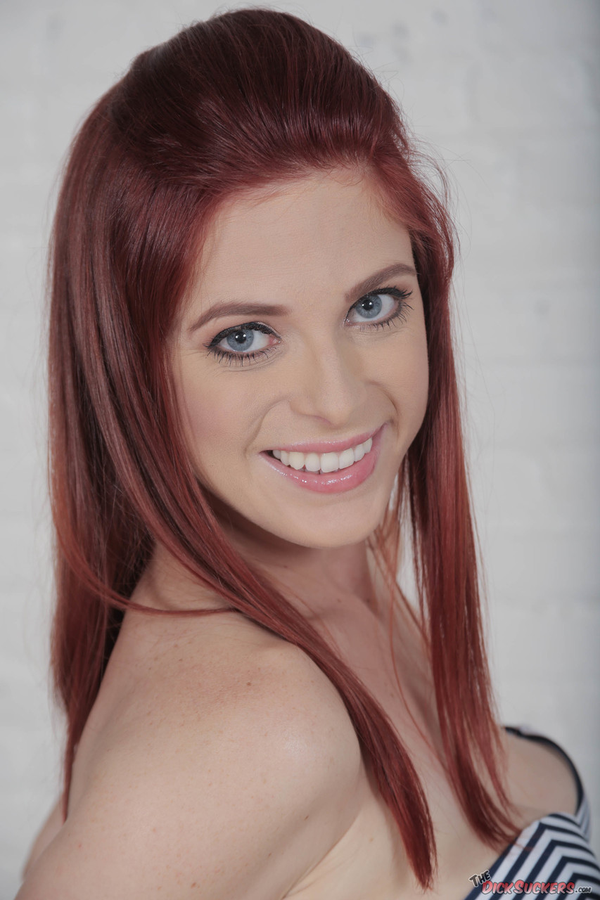 Грудастая рыжеволосая девушка полностью раздевается перед минетом от первого лица