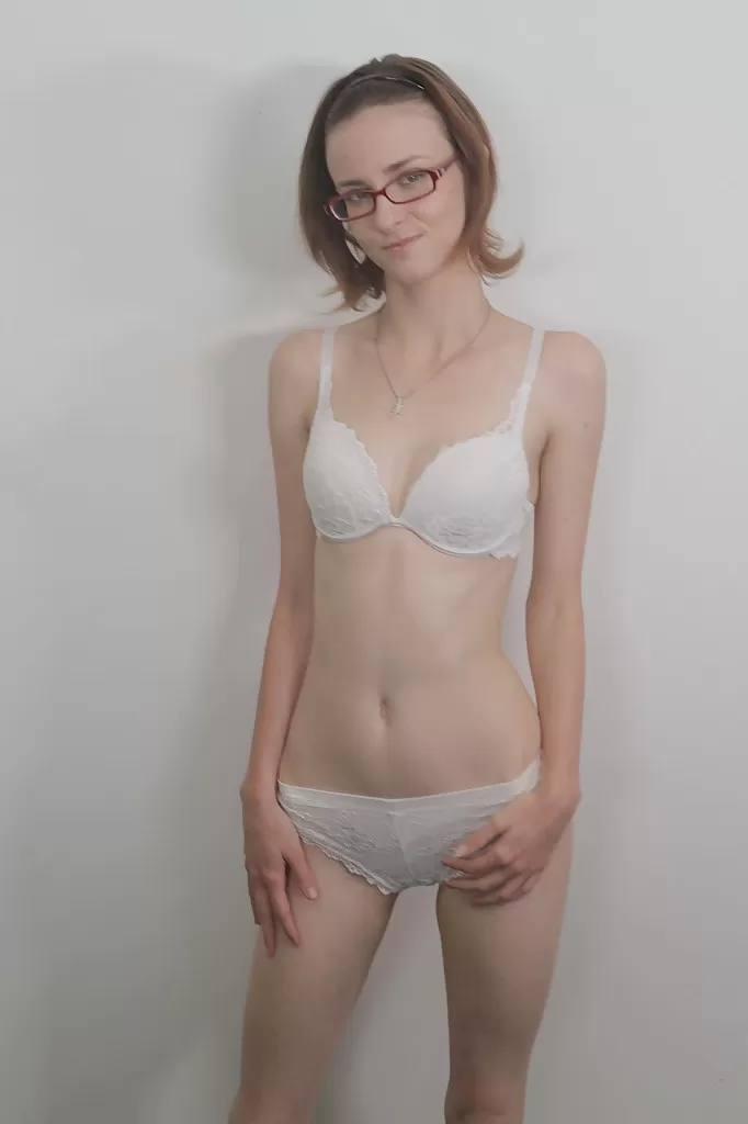 Худенькая красотка в сексуальных очках Джей Тейлор показывает свои крошечные сиськи
