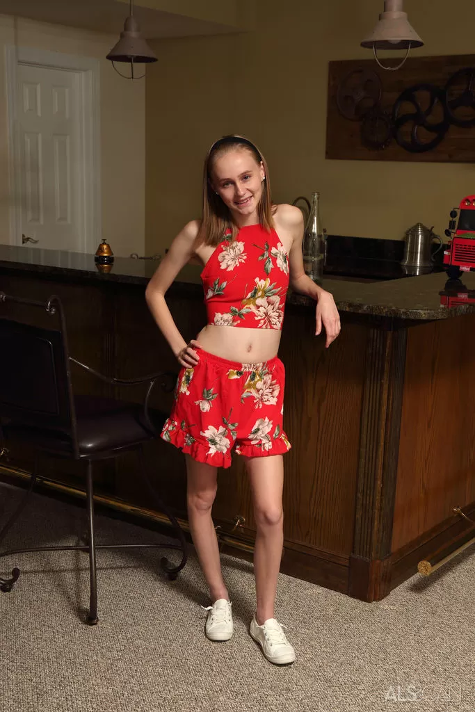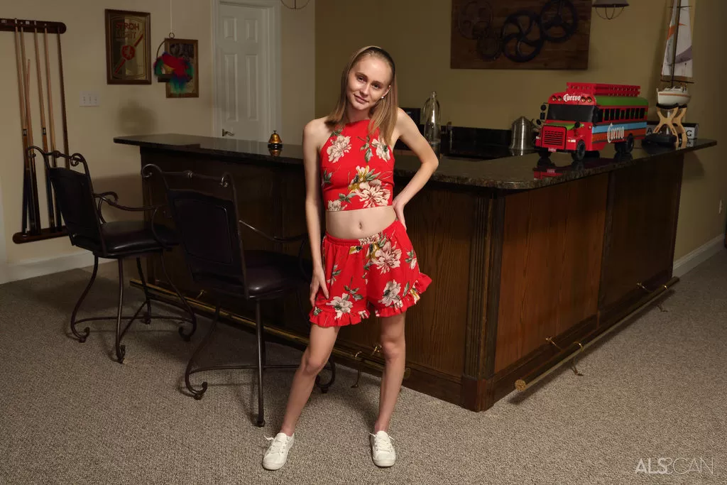 Худенькая молоденькая Алисия Уильямс засовывает длинный огурец в свою пизду, как только оказывается обнаженной