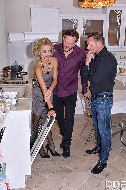 Коротко стриженная блондинка Вероника Лил получает двойной трах во время грубого секса
