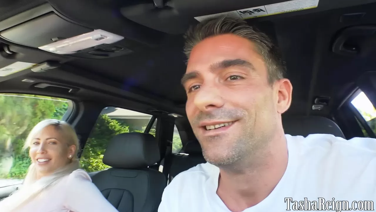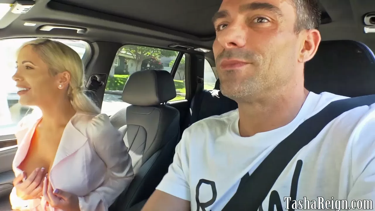 Милфа-блондинка Таша Рейн делает минет водителю автомобиля