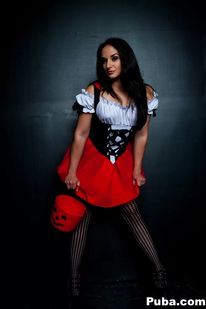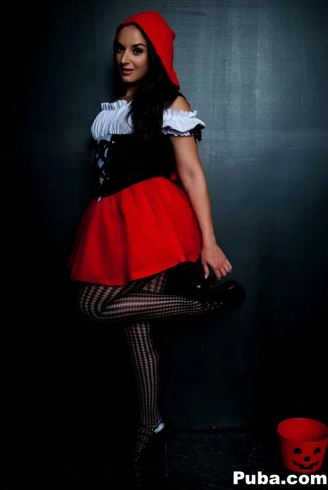 Милфа латиноамериканка Шина Райдер снимает свой наряд Красной шапочки в сексуальных колготках