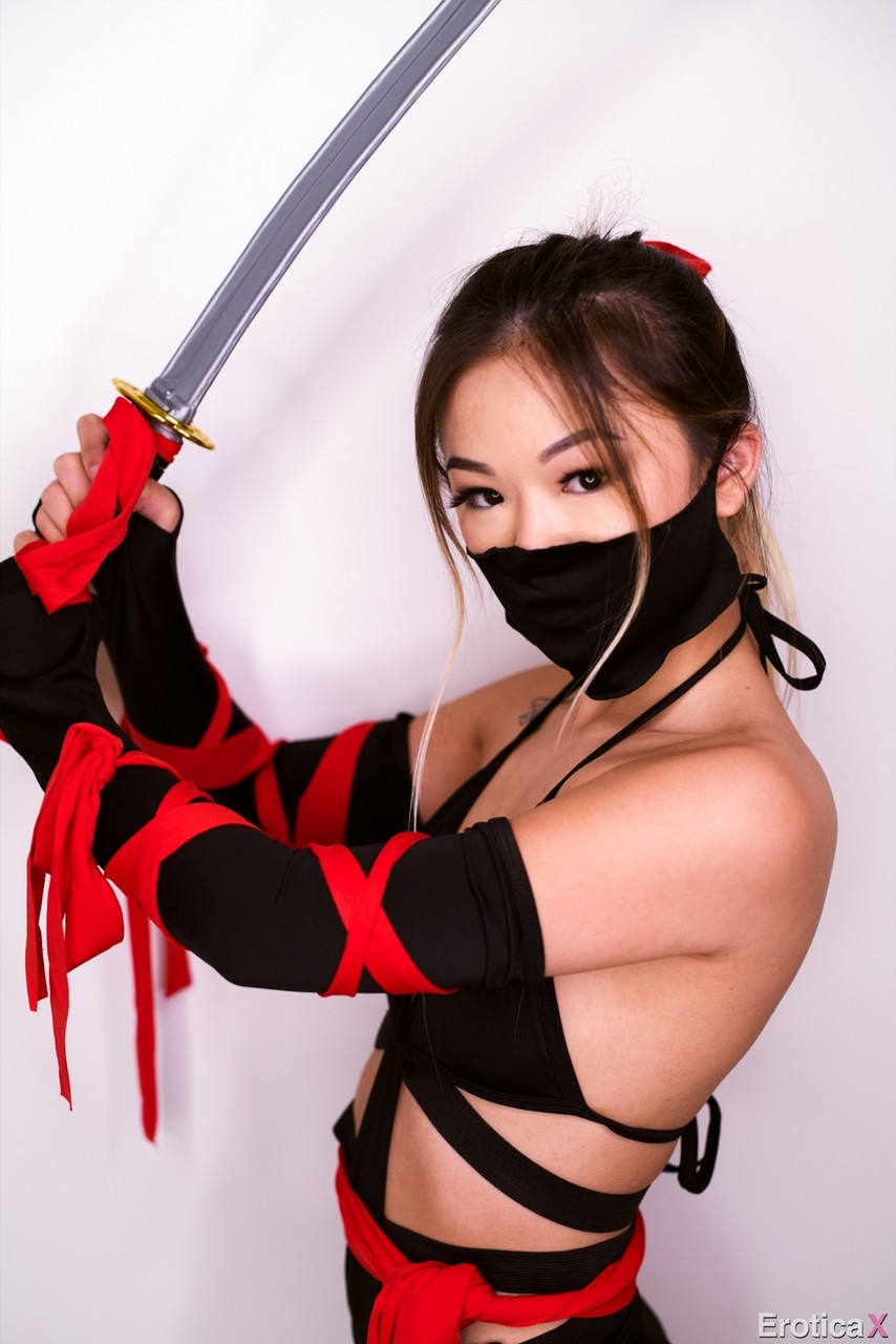 Миниатюрная азиатка Лулу Чу владеет самурайским мечом перед трахом