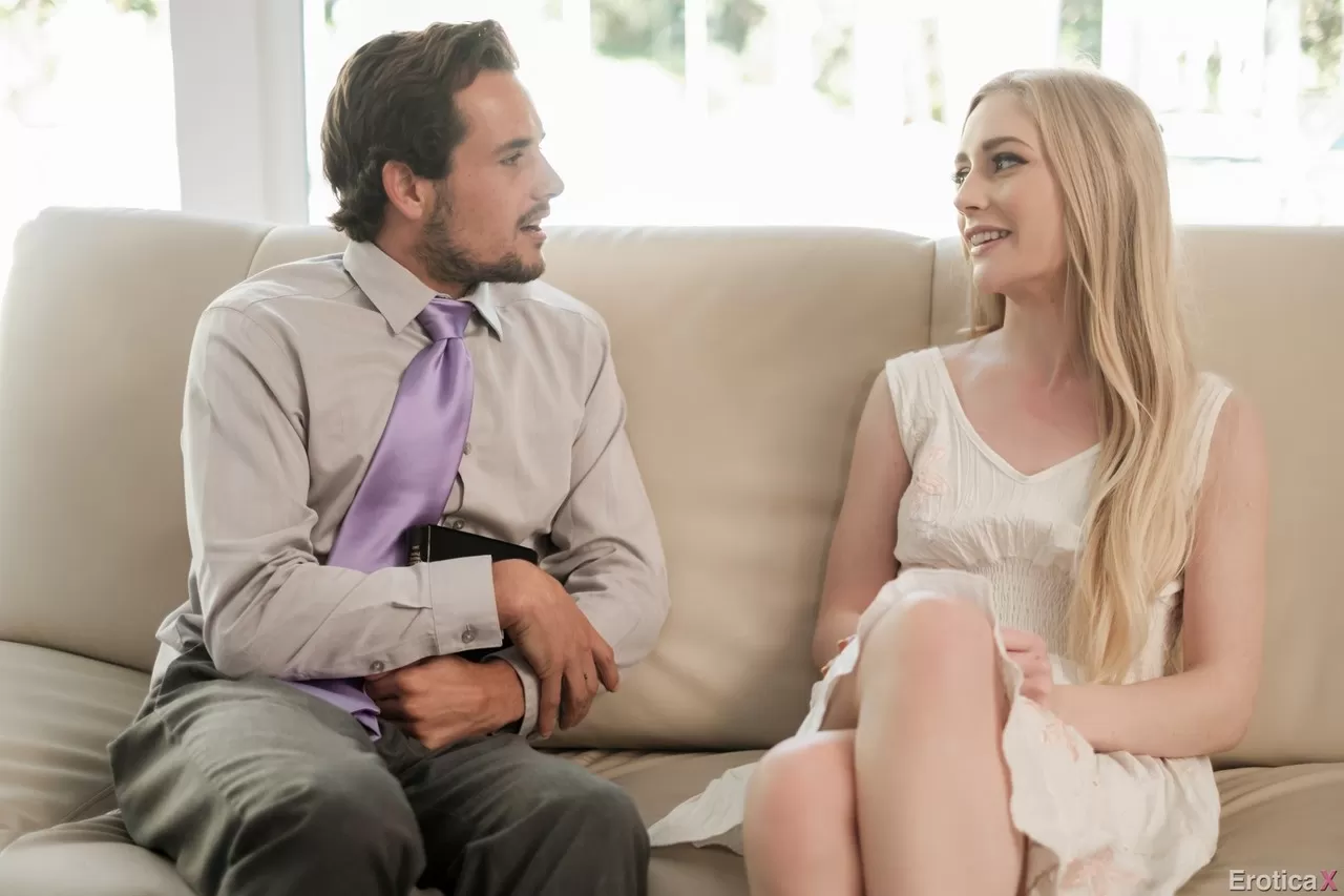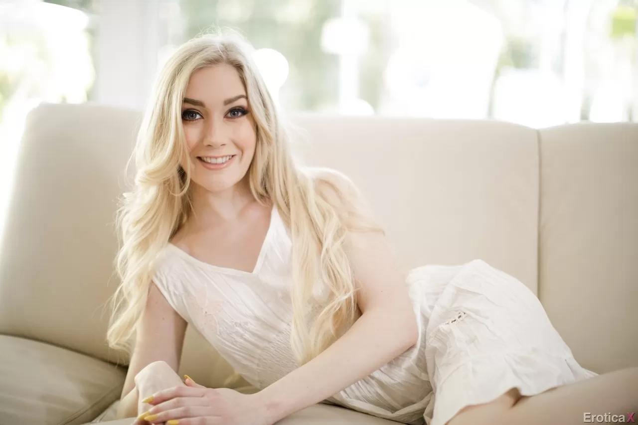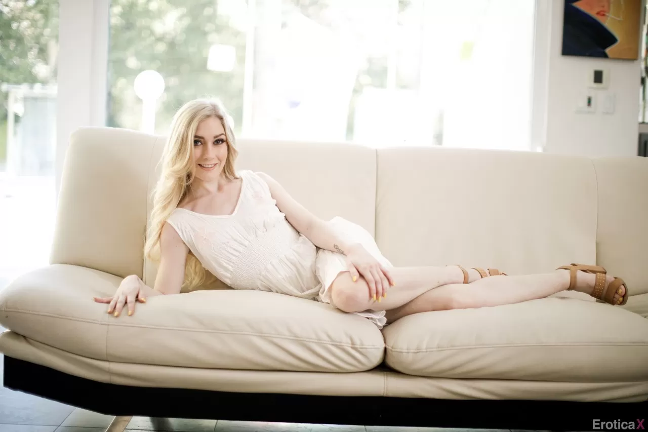 Молодая блондинка Эмма Старлетто истекает спермой из киски после жесткого траха на диване