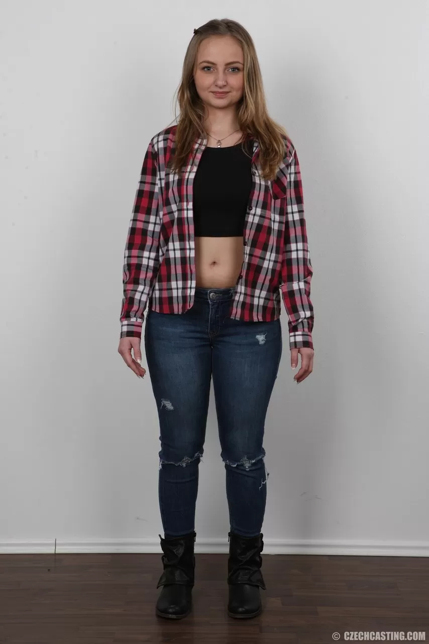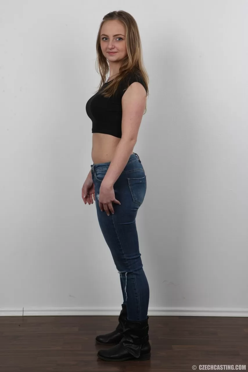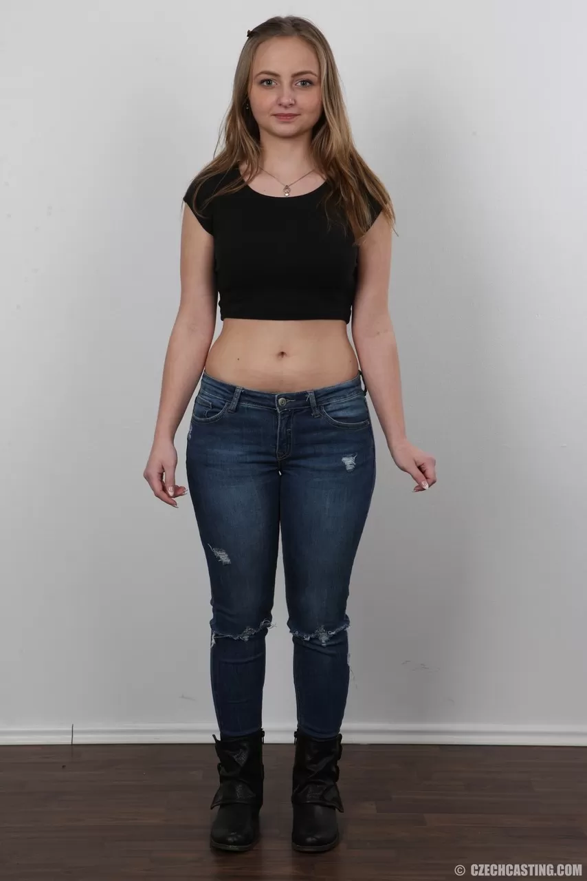Молодая блондинка Ирена снимает с себя джинсы и предстает перед камерой совершенно обнаженной
