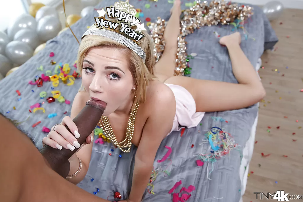 Молоденькая блондинка Белла Роуз делает Чёрный хуй межрасовый минет на новогодней вечеринке