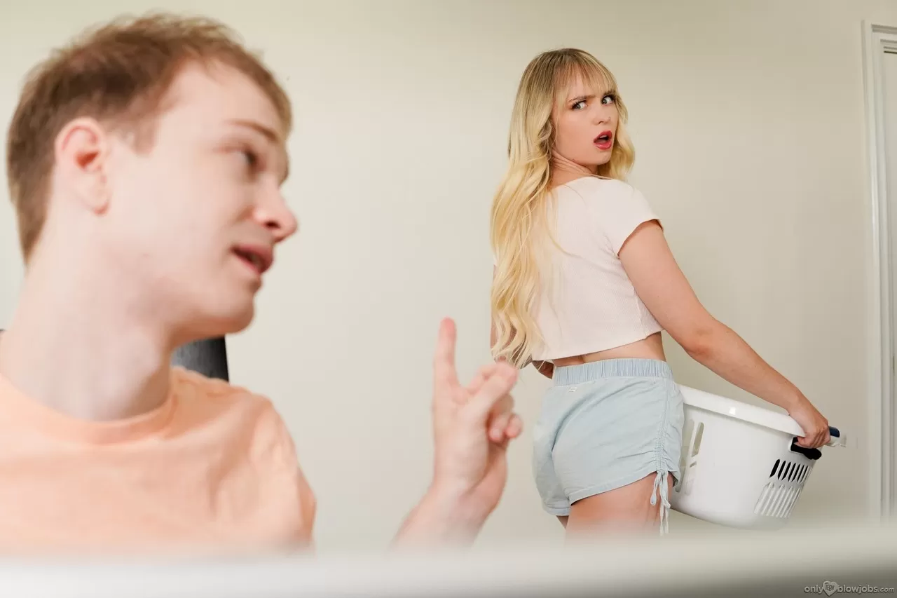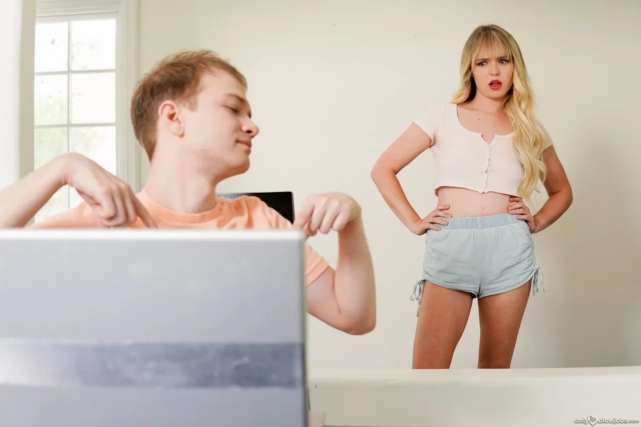 Молоденькая блондинка Лилли Белл обнажает свою шикарную задницу перед тем, как отсосать длинному члену
