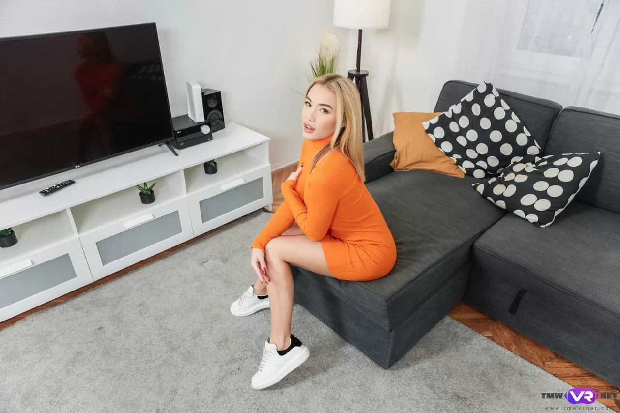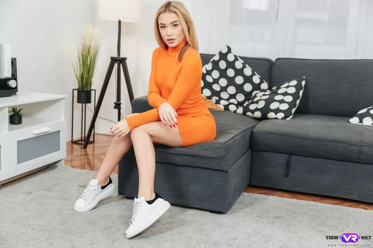 Молоденькая блондинка Рика Фэйн теребит пальцами свою возбужденную киску в кроссовках