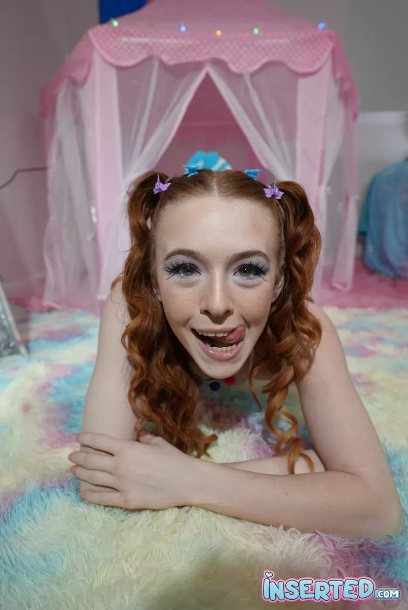 Молоденькая рыжеволосая Мади Коллинз раздевается догола в гольфах и с косичками