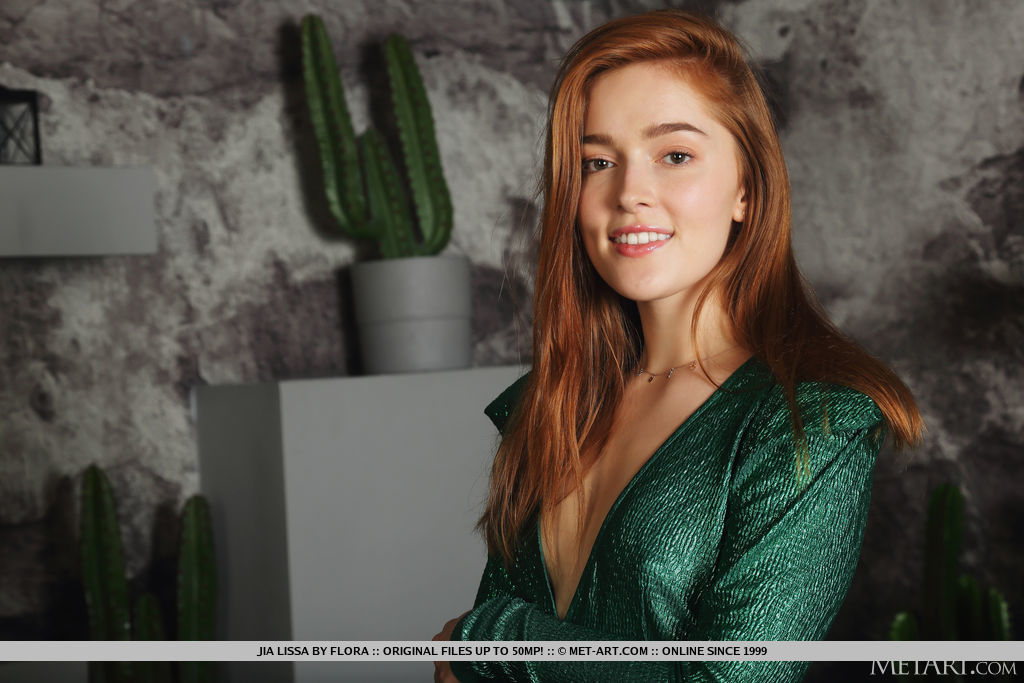 Натуральная рыжеволосая Цзя Лисса снимает одежду со своего юного девичьего тела