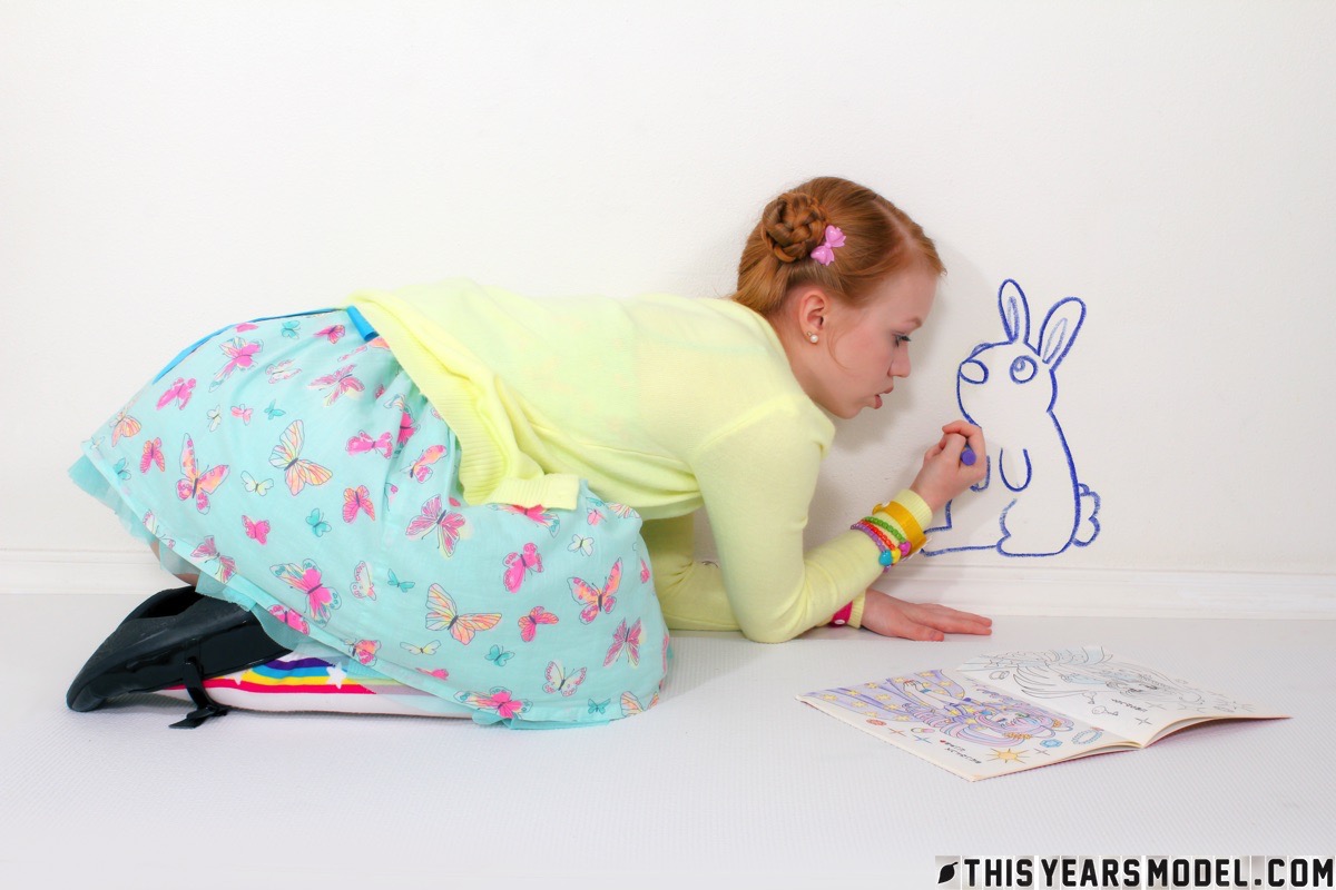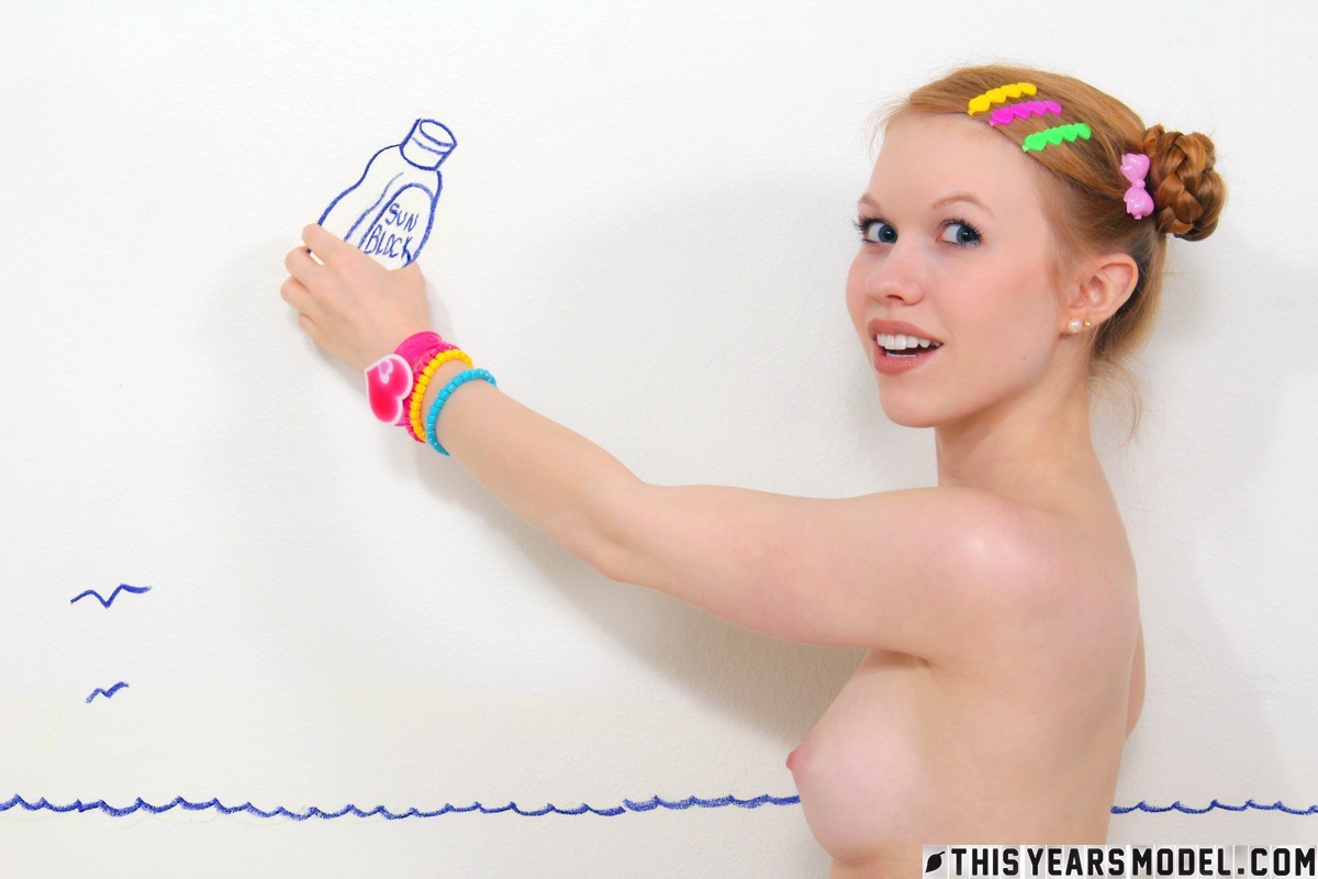 Очаровательная рыжеволосая молоденькая Долли Литтл раздевается догола в носках и туфлях Мэри Джейн