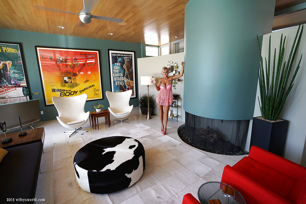 Пышногрудая белокурая домохозяйка Сандра Оттерсон расхаживает в нижнем белье и на высоких каблуках