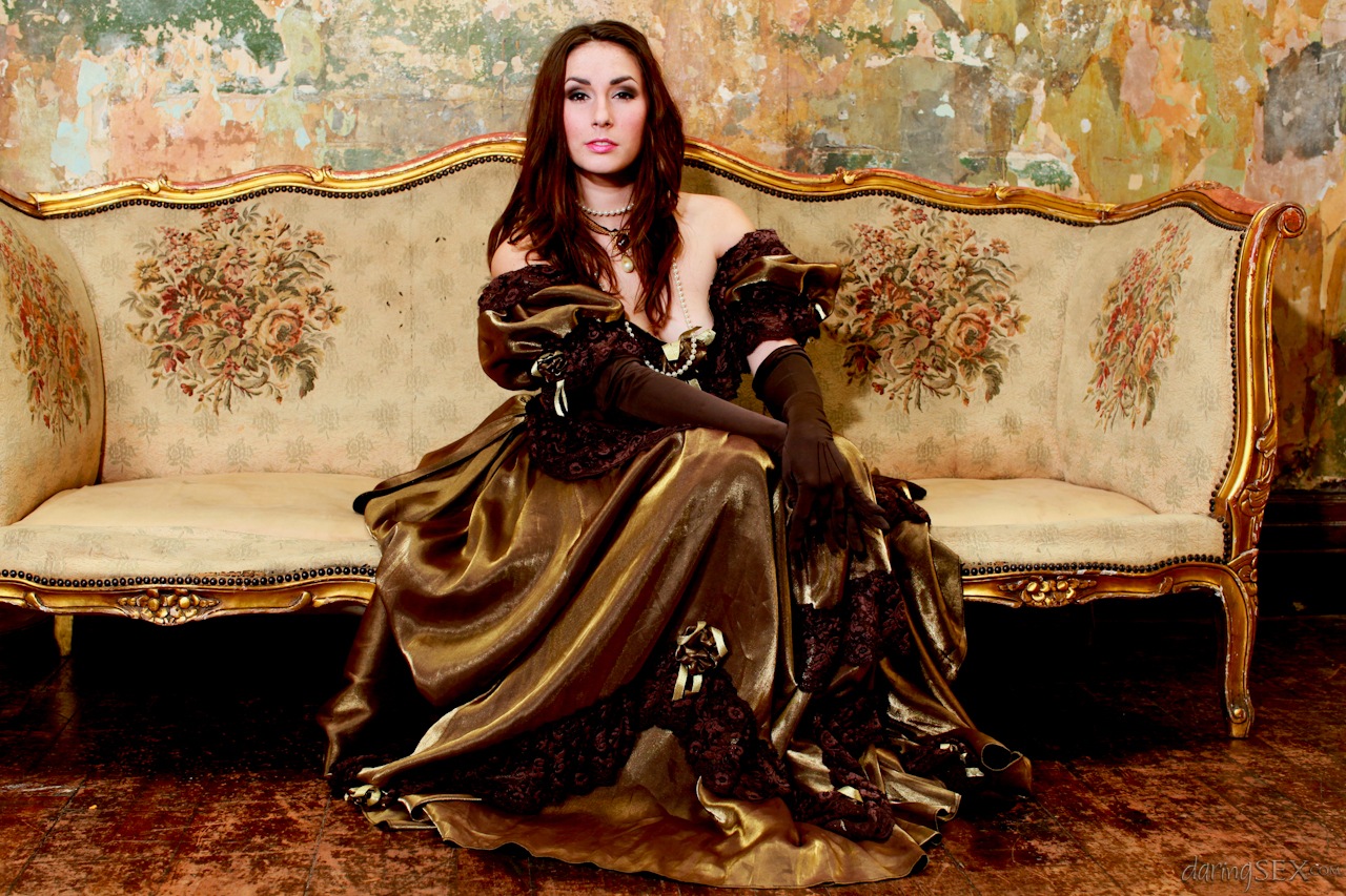 Порнозвезда Пейдж Тернах позволяет своему длинному платью задираться вверх и прикрывать голую задницу