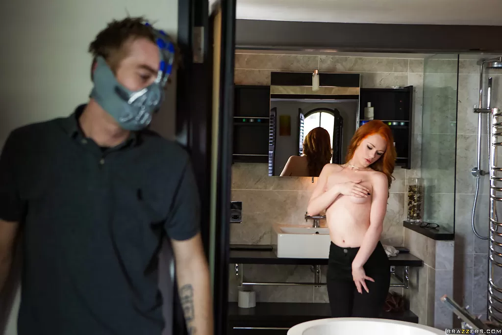 Рыжеволосая порнозвезда Элль Хьюз делает минет в очках