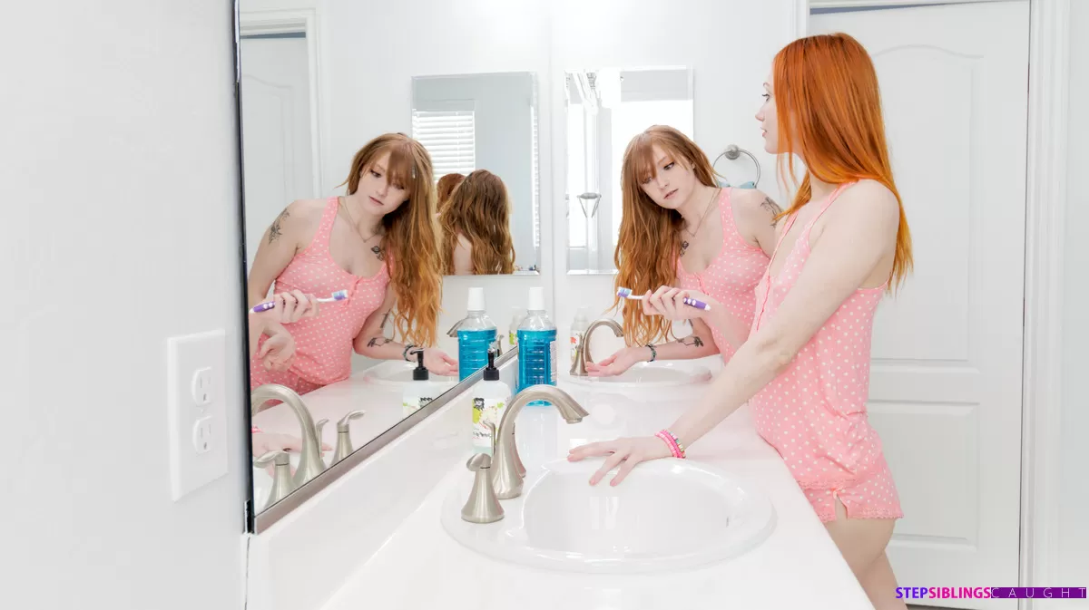 Рыжеволосые сводные сестры Скарлет Скайс и Эмбер Старк занимаются сексом втроем с парнем