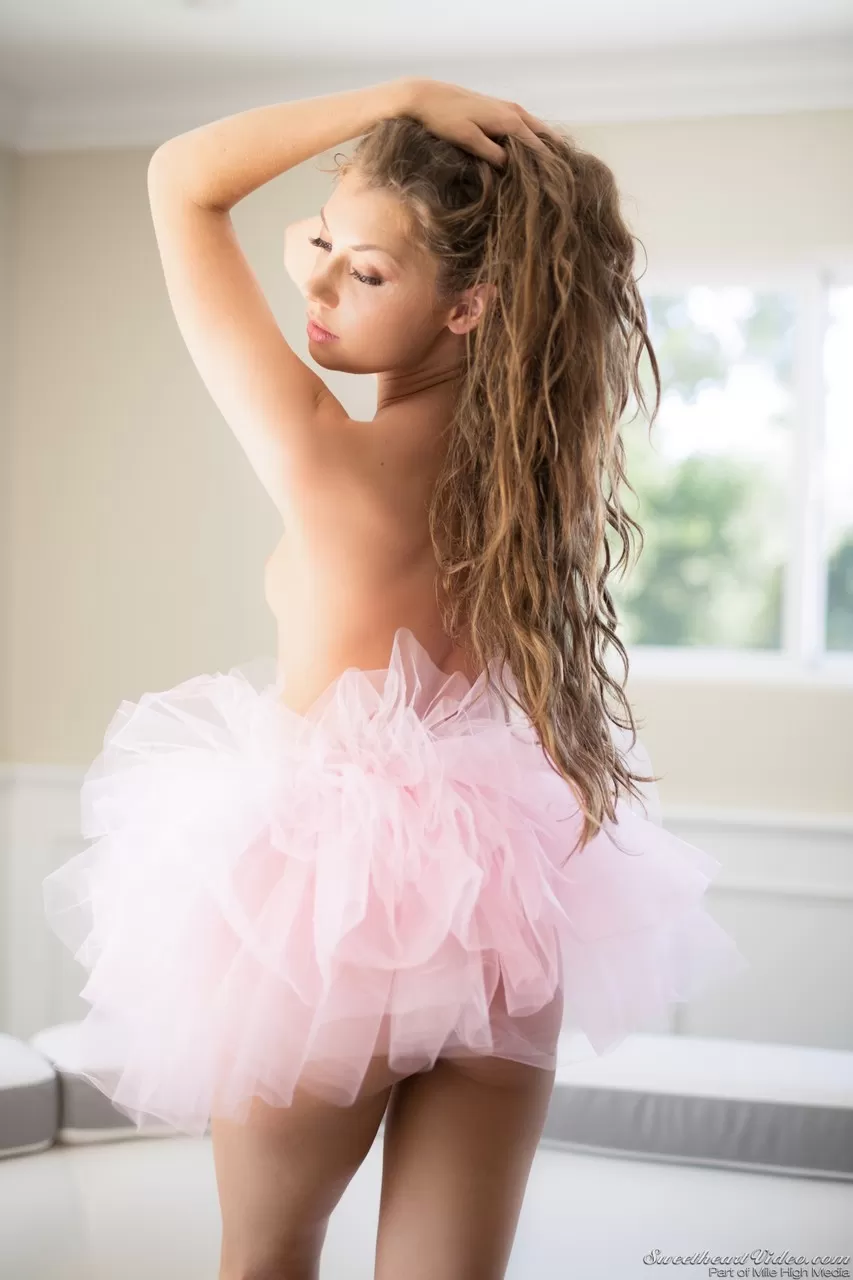 Сексуальная девушка Елена Кошка снимает балетную пачку, чтобы позировать полностью обнаженной