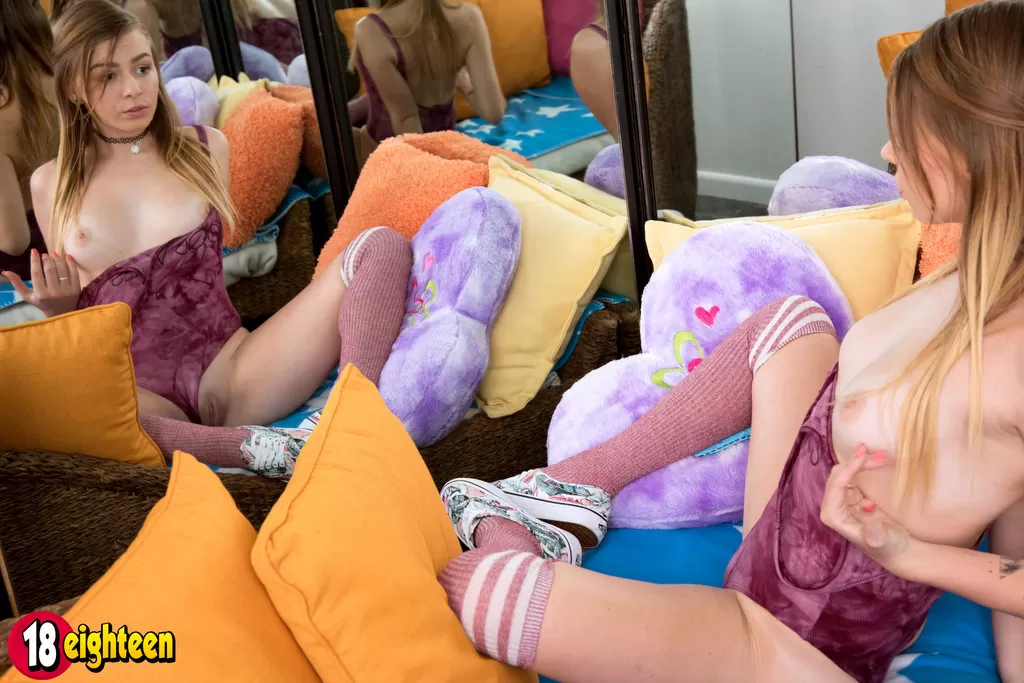 Сексуальная девушка-подросток Алекс Блейк раздевается до голых носков