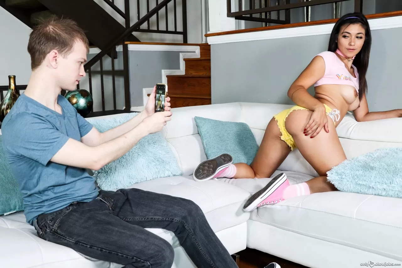 Сексуальная молоденькая Бруклин Грей отсасывает своему сводному брату, пока он записывает это действие