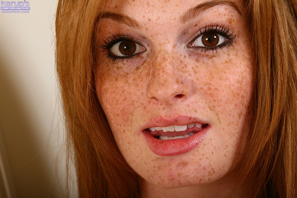 Симпатичная девушка с веснушчатым личиком снимает свое нижнее белье и дразнит свою щелочку