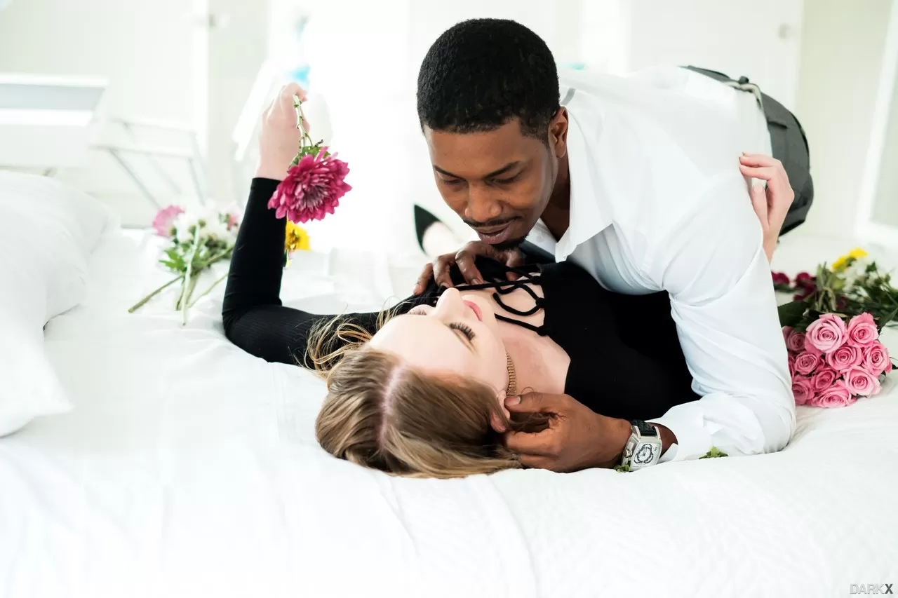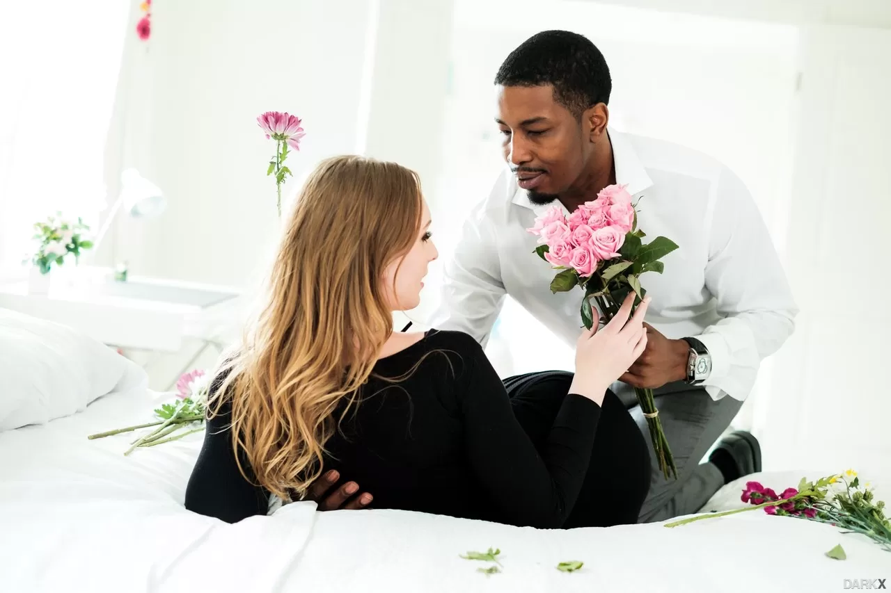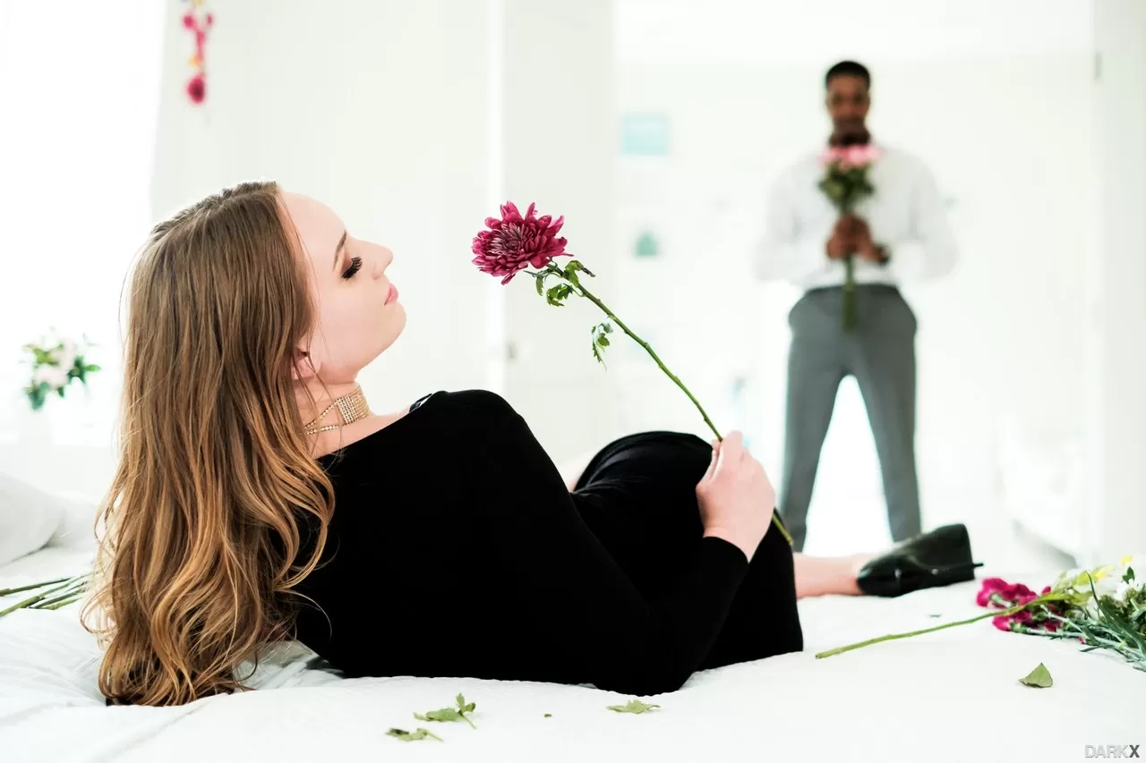 Симпатичная молоденькая Дейзи Стоун получает в подарок цветы перед межрасовым анальным сексом