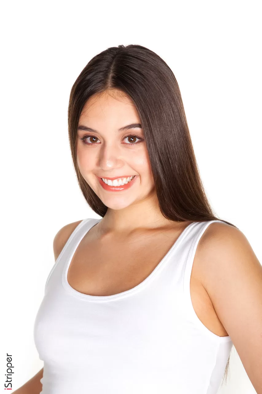 Сладкая молоденькая Люси Долл держится за свою голую попку после того, как сняла клетчатую микроюбку