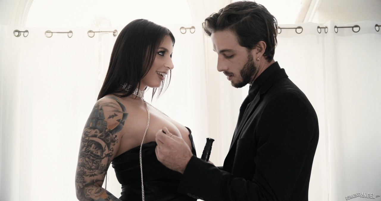 Соблазнительная Айви Лебель, одетая в облегающее черное мини-платье и бритву