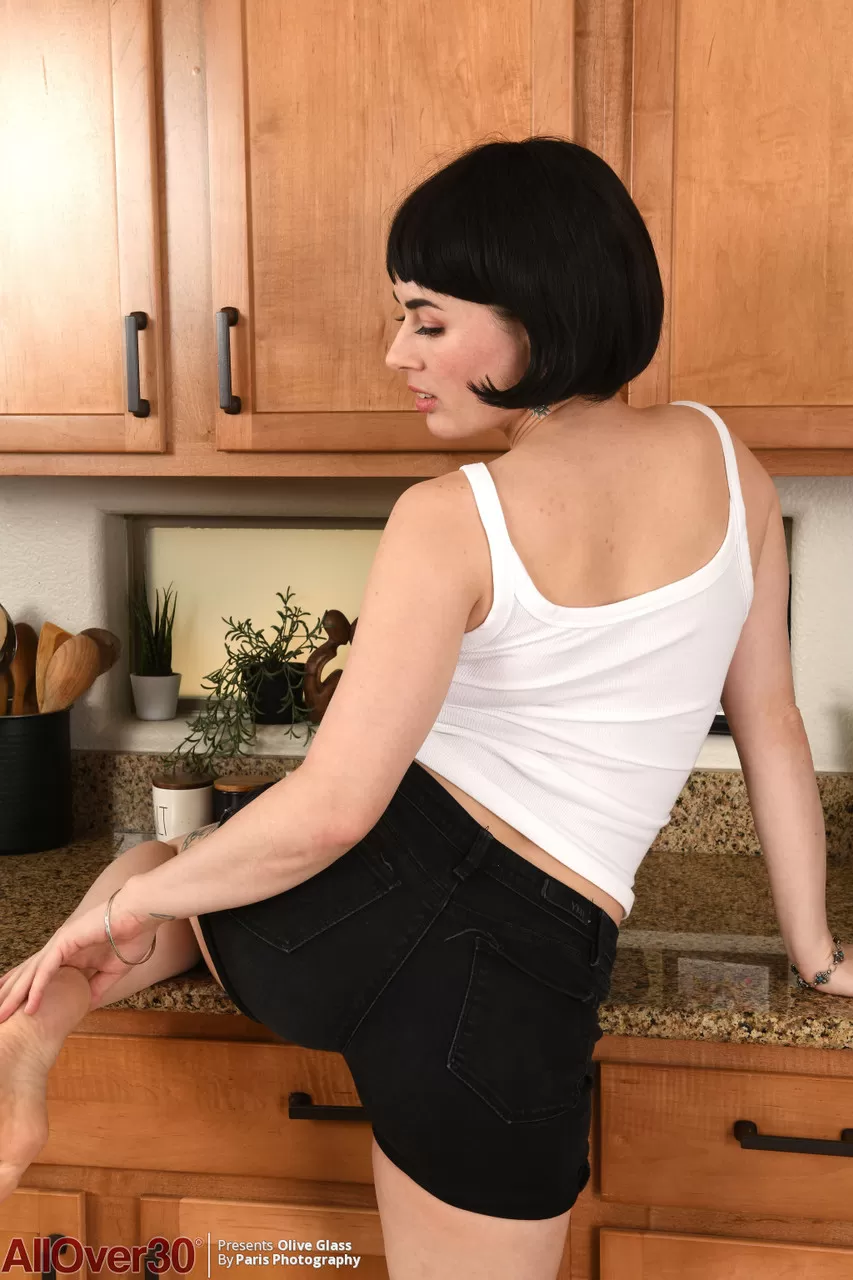 Темноволосая милфа Олив Гласс раздвигает свою киску после того, как обнажает свои идеальные сиськи