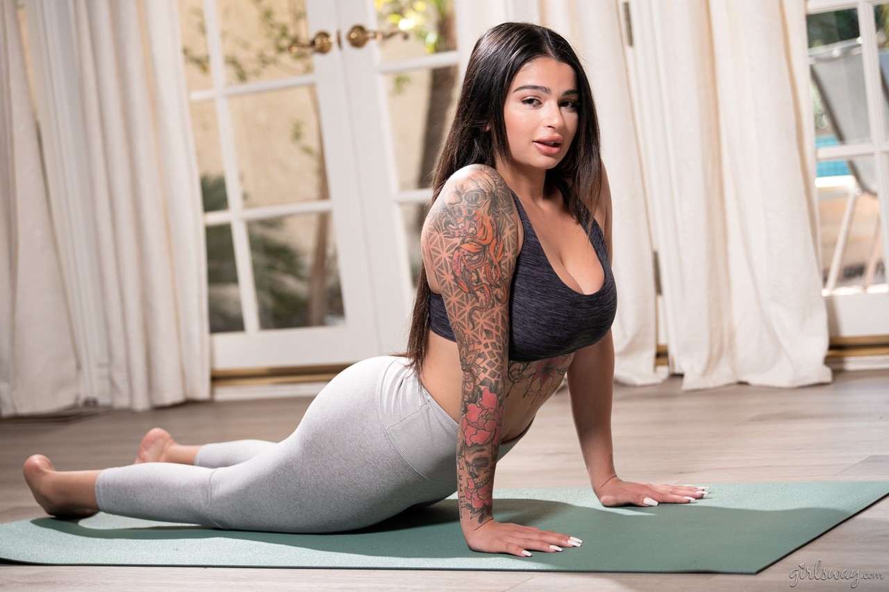Три толстозадые женщины занимаются йогой в своей тренировочной одежде