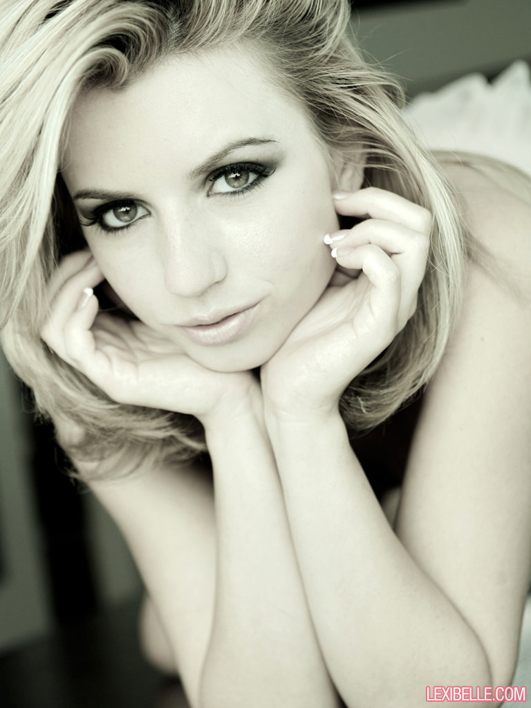 Великолепная блондинка Лекси Белль обнажает свои упругие сиськи во время сольного действия