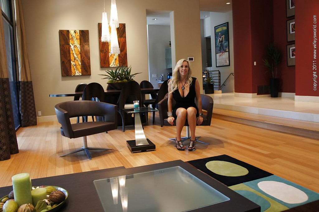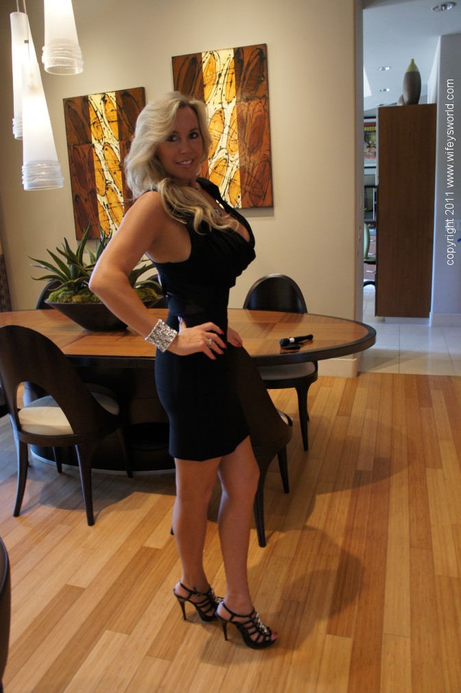 Великолепная блондинка на высоких каблуках обнажает свои большие сиськи и киску