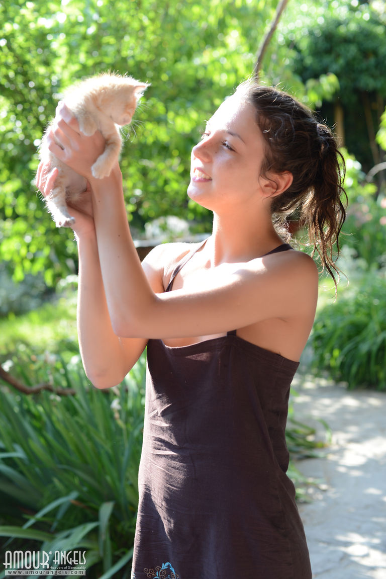 Юная легалистка снимает с себя одежду и позирует обнаженной на надувном матрасе