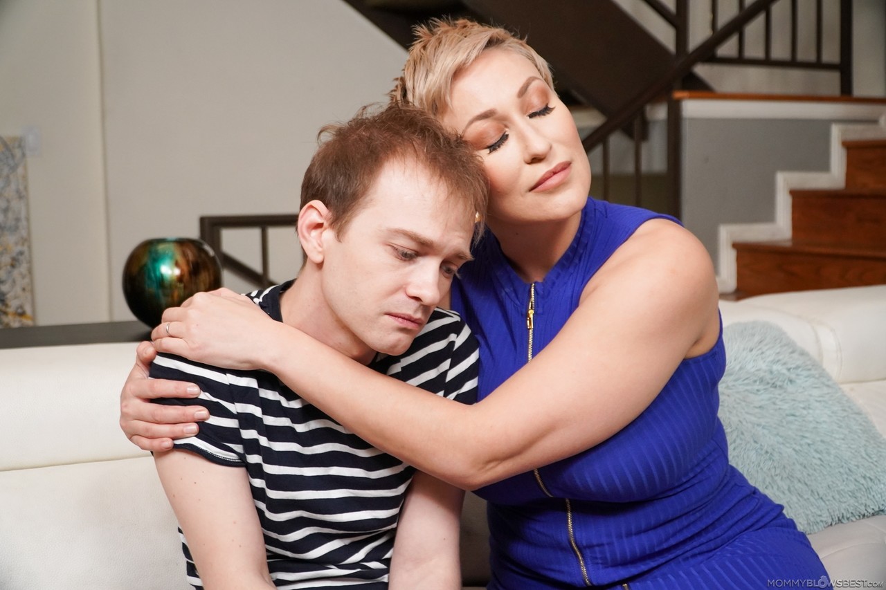 Зрелая женщина с короткими волосами Райан Кили соблазняет и отсасывает своему пасынку